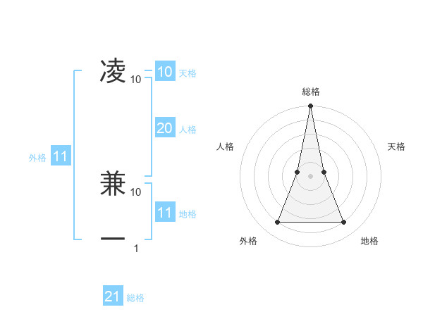 凌 兼一さんの総格は21画の5点!