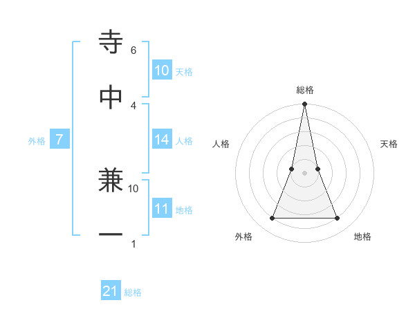 寺中 兼一さんの総格は21画の5点!