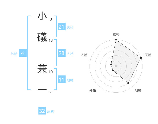 小礒 兼一さんを姓名の画数から五運を鑑定