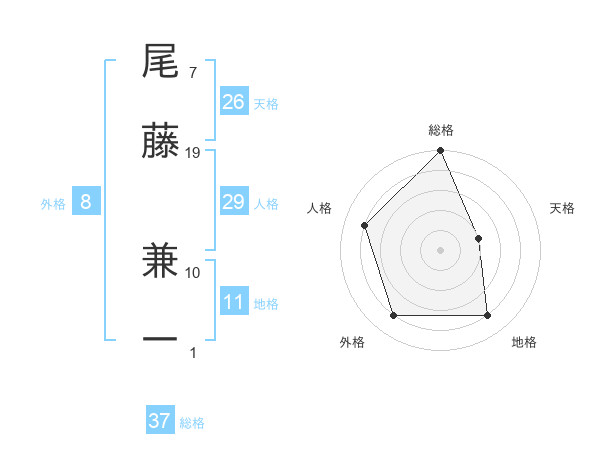 尾藤 兼一さんの総格は37画の5点!