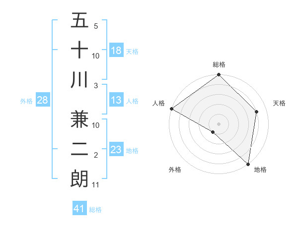 五十川 兼二朗さんを姓名の画数から五運を鑑定