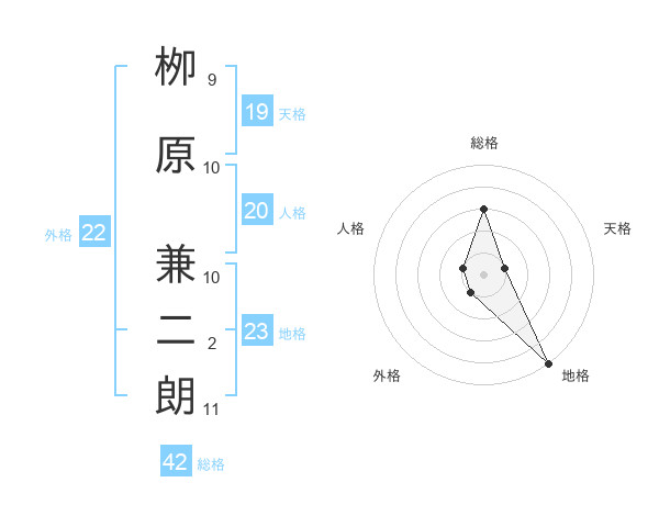栁原 兼二朗さんの地格は23画の5点!