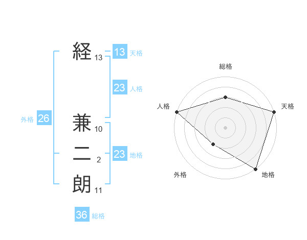 経 兼二朗さんを姓名の画数から五運を鑑定