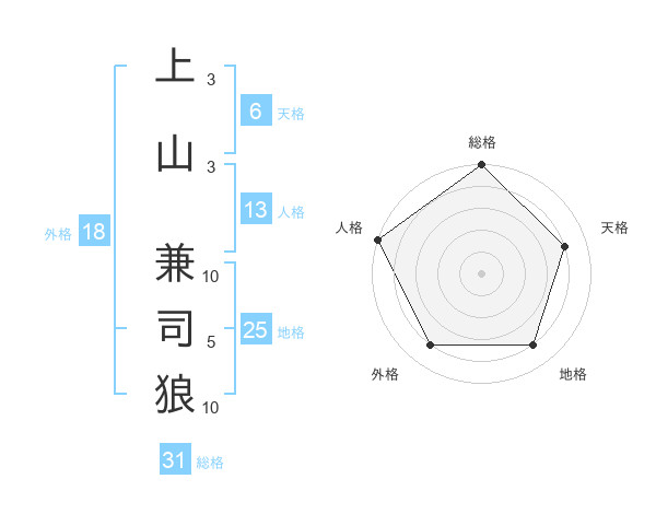上山 兼司狼さんを姓名の画数から五運を鑑定