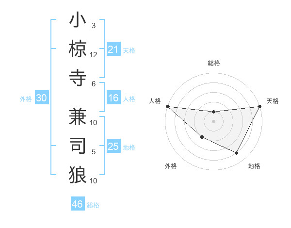 小椋寺 兼司狼さんの天格は21画の5点!