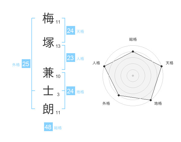 梅塚 兼士朗さんを姓名の画数から五運を鑑定