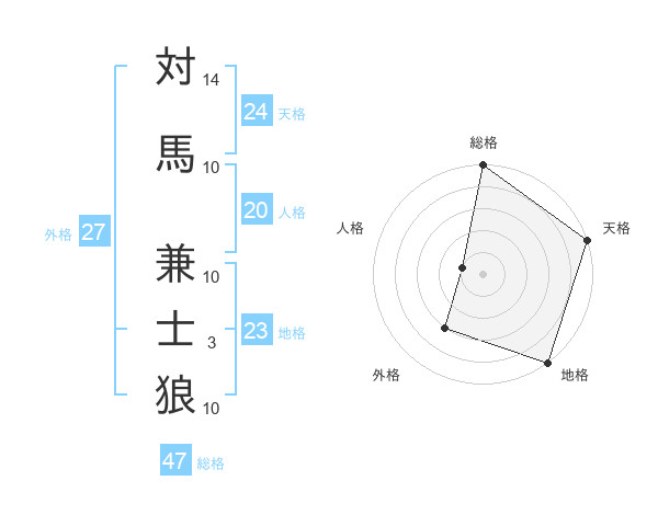 対馬 兼士狼さんを姓名の画数から五運を鑑定