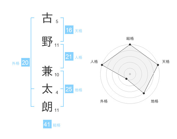 古野 兼太朗さんを姓名の画数から五運を鑑定