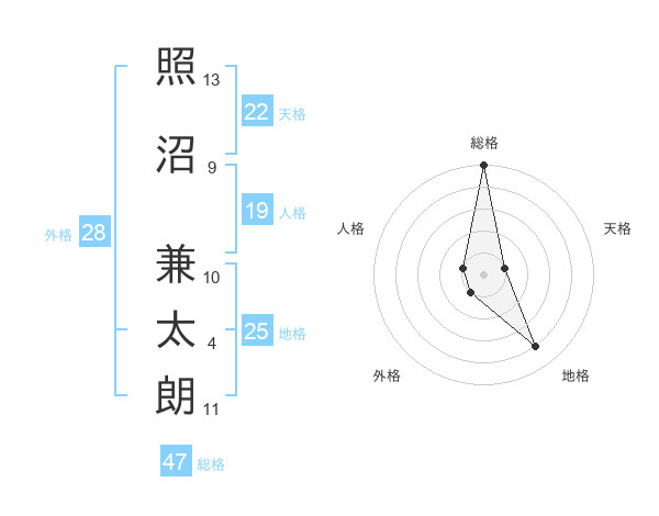 照沼 兼太朗さんを姓名の画数から五運を鑑定