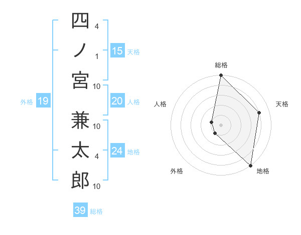四ノ宮 兼太郎さんの総格は39画の5点!