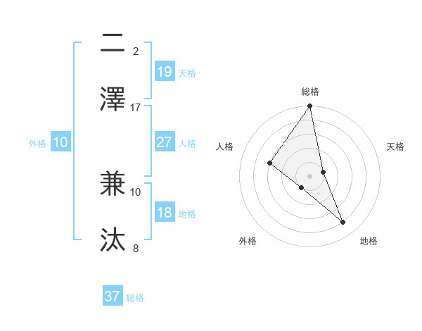 二澤 兼汰さんの総格は37画の5点!
