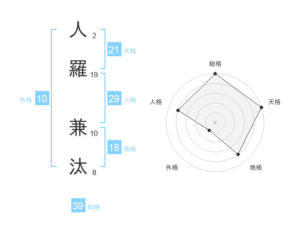 人羅 兼汰さんの総格は39画の5点!