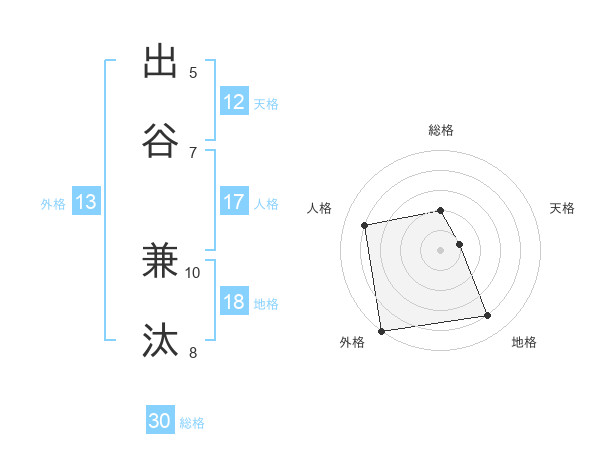 出谷 兼汰さんを姓名の画数から五運を鑑定