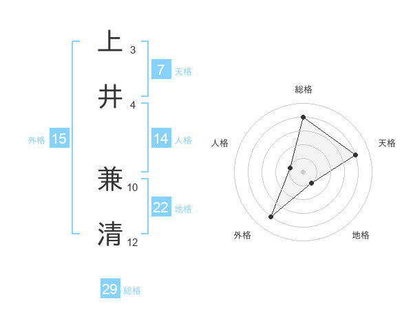 上井 兼清さんの総格は29画の4点!