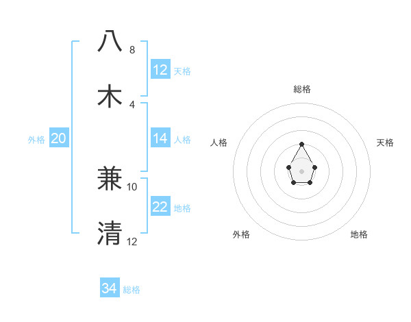 八木 兼清さんの総格は34画の2点!