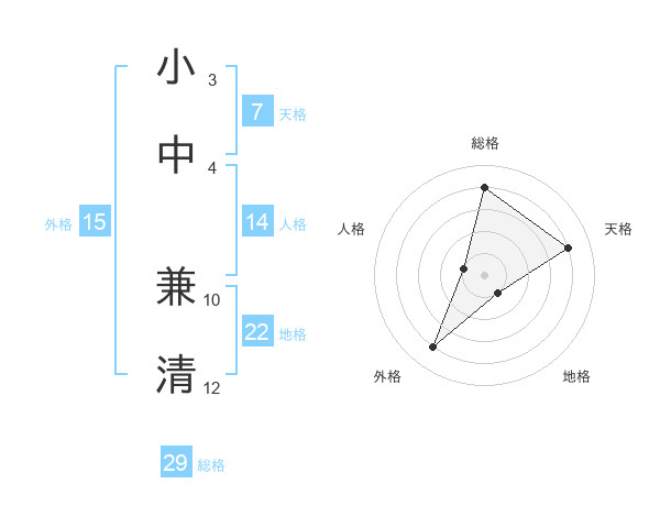 小中 兼清さんの総格は29画の4点!