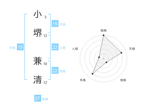 小堺 兼清さんの総格は37画の5点!