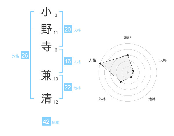 小野寺 兼清さんを姓名の画数から五運を鑑定
