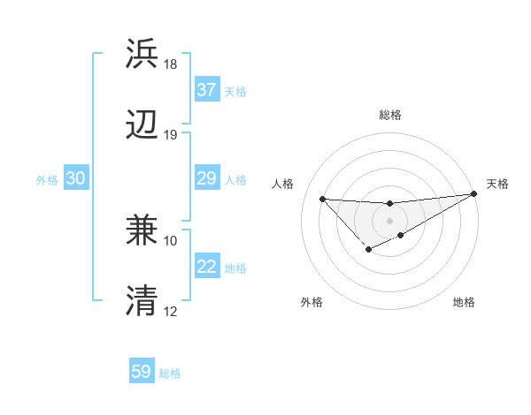 浜辺 兼清さんを姓名の画数から五運を鑑定