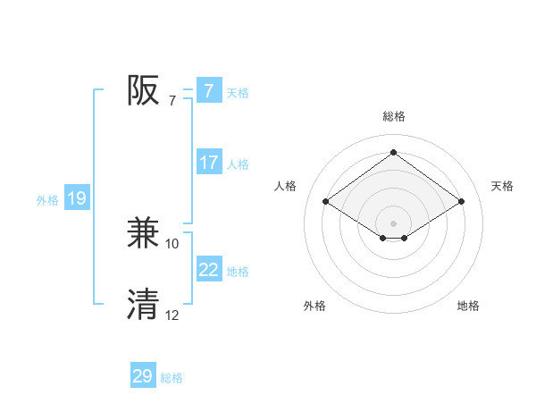 阪 兼清さんの総格は29画の4点!