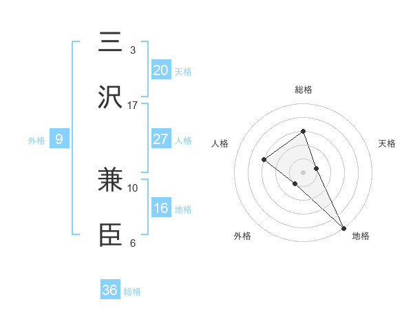 三沢 兼臣さんを姓名の画数から五運を鑑定