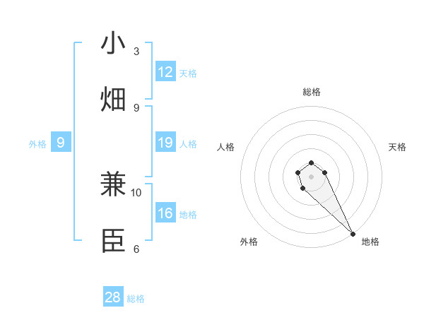 小畑 兼臣さんの天格は12画の1点!