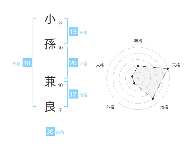小孫 兼良さんを姓名の画数から五運を鑑定