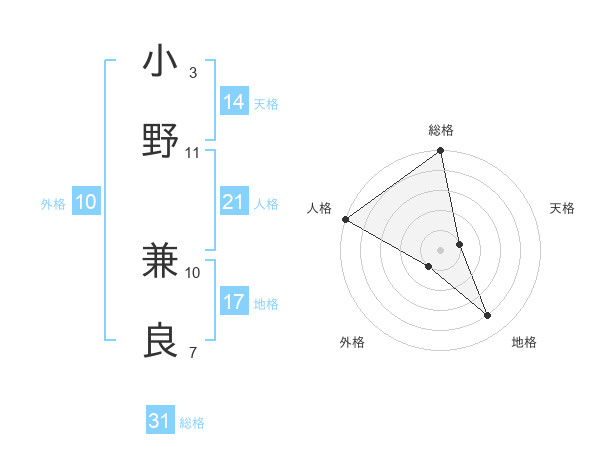 小野 兼良さんの総格は31画の5点!