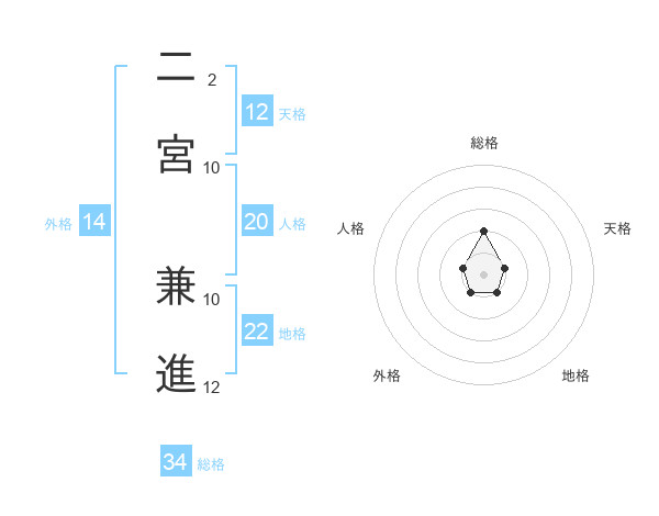二宮 兼進さんの天格は12画の1点!