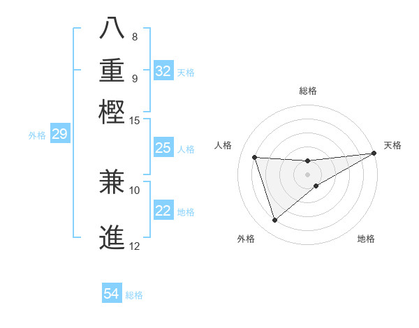 八重樫 兼進さんを姓名の画数から五運を鑑定
