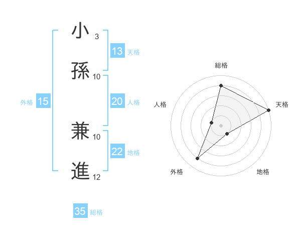 小孫 兼進さんの総格は35画の4点!