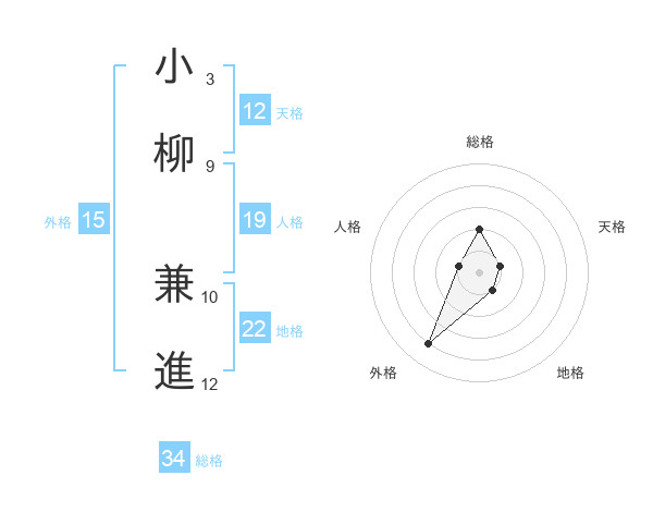 小柳 兼進さんの地格は22画の1点!