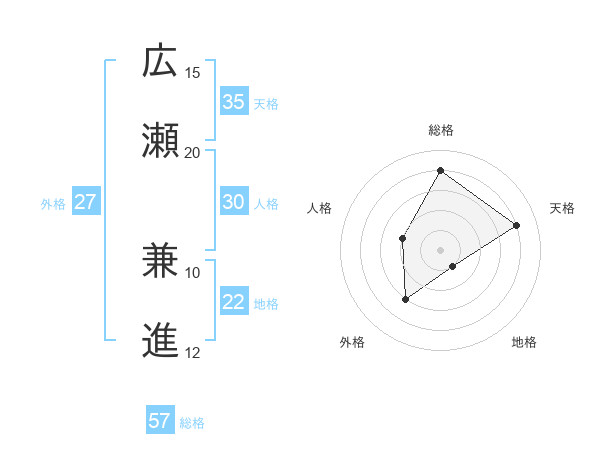 広瀬 兼進さんの総格は57画の4点!