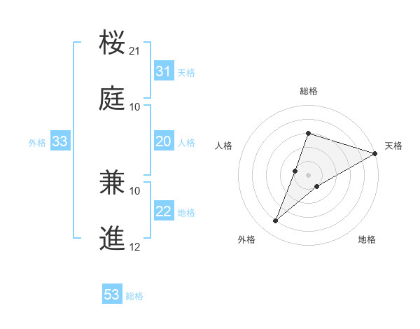 桜庭 兼進さんの総格は53画の3点!