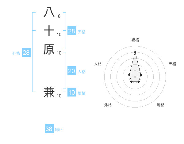 八十原 兼さんの総格は38画の4点!