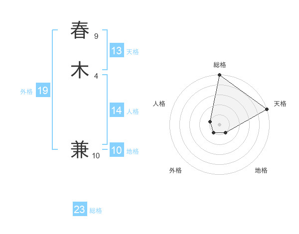 春木 兼さんの総格は23画の5点!