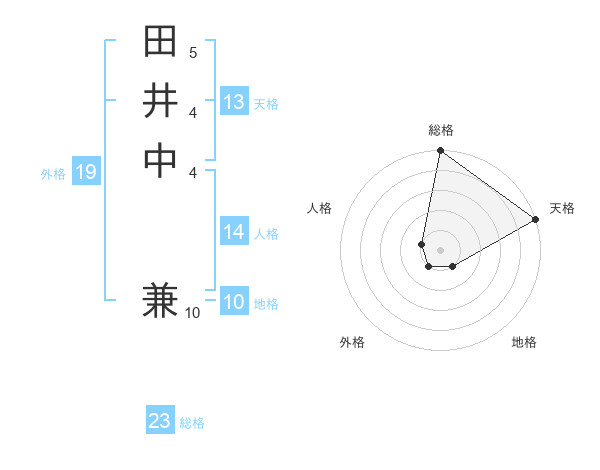 田井中 兼さんの総格は23画の5点!