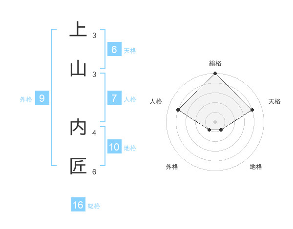 上山 内匠さんの総格は16画の5点!