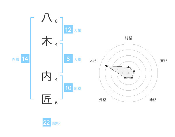 八木 内匠さんの総格は22画の1点!