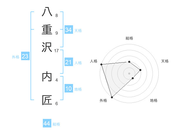 八重沢 内匠さんを姓名の画数から五運を鑑定