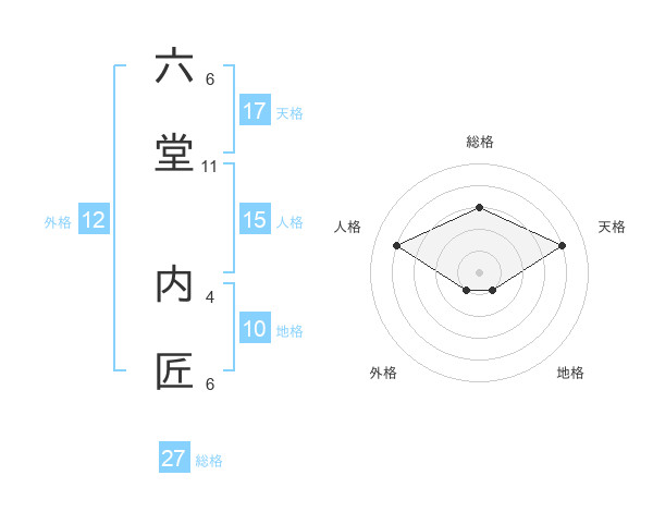 六堂 内匠さんの総格は27画の3点!