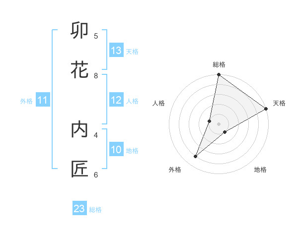 卯花 内匠さんを姓名の画数から五運を鑑定