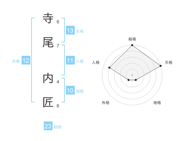 寺尾 内匠さんを姓名の画数から五運を鑑定