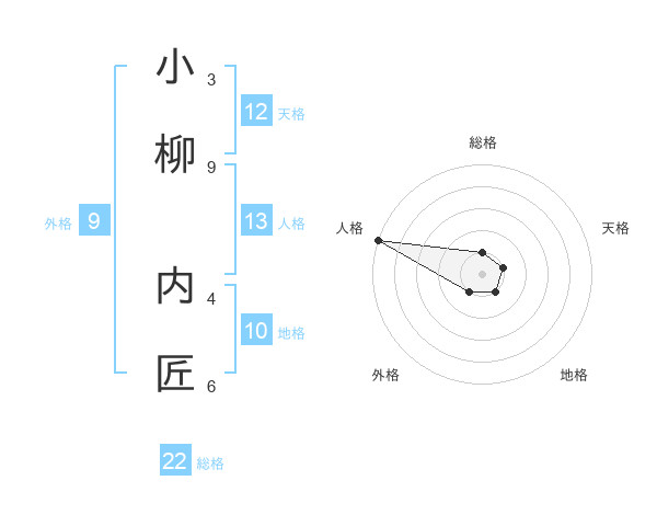 小柳 内匠さんの総格は22画の1点!