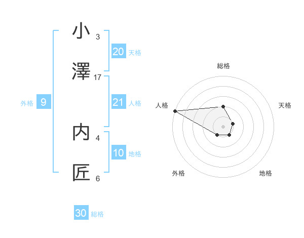 小澤 内匠さんの総格は30画の2点!
