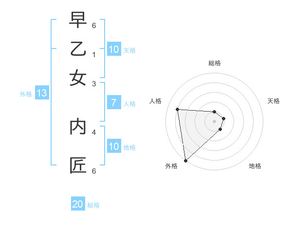 早乙女 内匠さんを姓名の画数から五運を鑑定