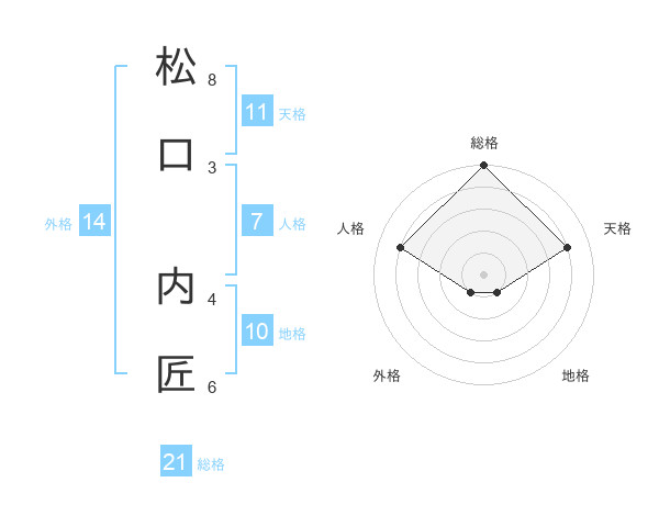 松口 内匠さんの総格は21画の5点!