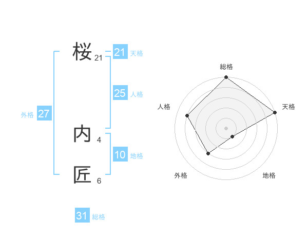 桜 内匠さんの総格は31画の5点!