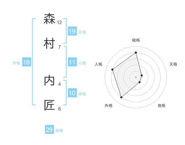 森村 内匠さんの総格は29画の4点!