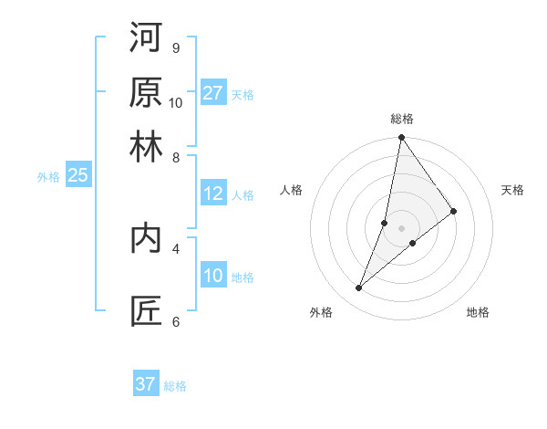 河原林 内匠さんの総格は37画の5点!